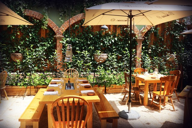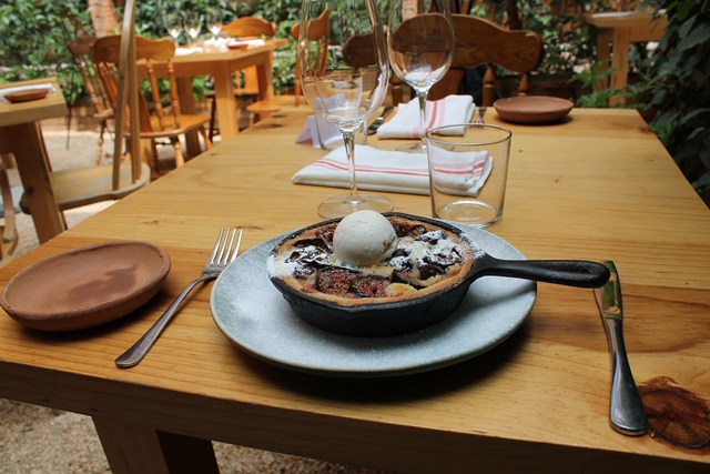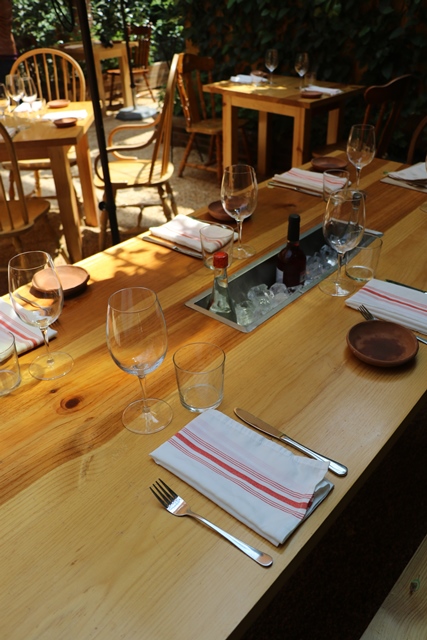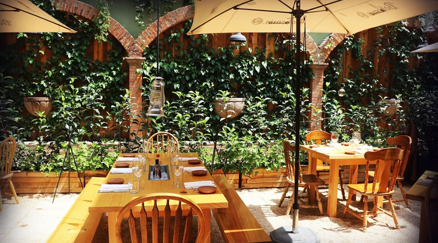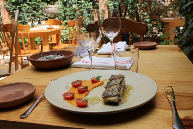 Difícil creer que no hay ni un sólo ruido de la calle en este lugar, el aire que se respira es agradable, el mobiliario de madera, en suelo empedrado y toda la terraza abierta, generan una sensación fantástica…