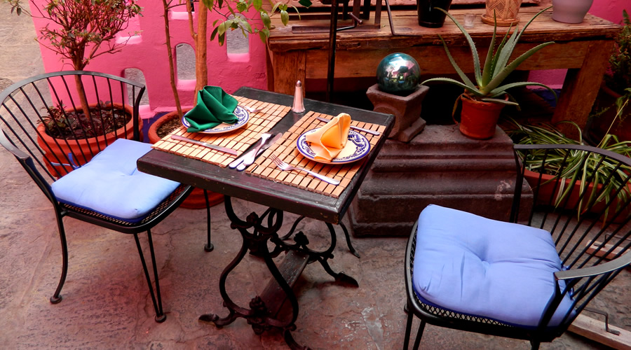 El restaurante, se conecta con el patio central del hotel, en donde convergen todas las habitaciones en el primer piso. Este interesante patio, lleno de objetos de arte y antigüedades, sirve de escenario perfecto para veladas románticas, o quizá la antesala para desayunar antes de recorrer las calles de esta hermosa ciudad.